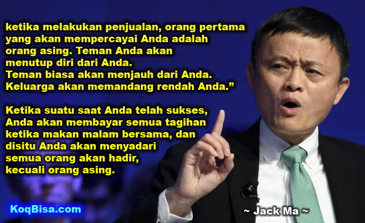 Jangan mudah menyerah ya dalam bisnis atau karier. Jack ma memang layak jadi inspirasi hidup buat kamu. Kita bisa belajar banyak dari ceo alibaba ini dalam mengatasi permasalahan yang terjadi di hidup ini. Jack ma kemudian melihat bahwa kegagalan sebenarnya adalah berhenti bertarung, kata jack ma.